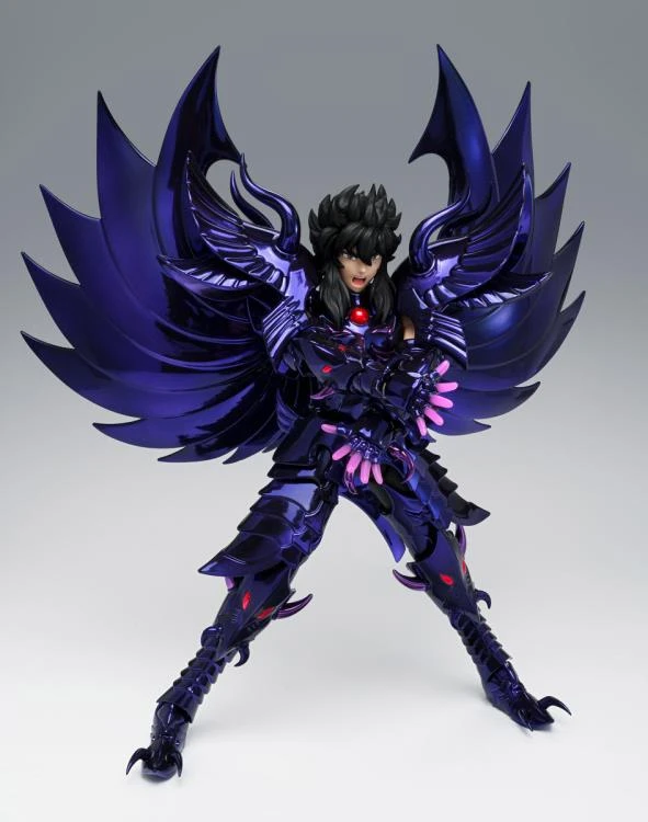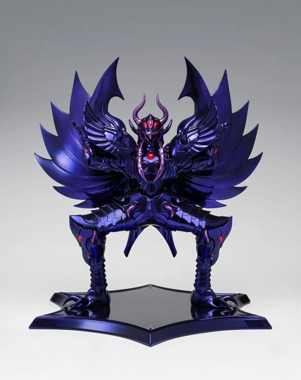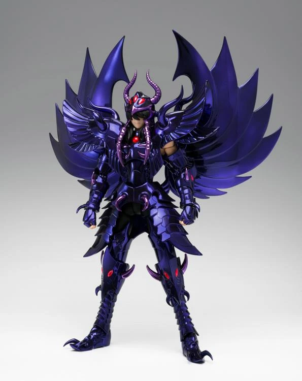 From the classic Saint Seiya anime comes Garuda Aiacos in his original armor colors! This beautiful figure includes the Surplice, frame for object form, along with interchangeable facial expressions, hands, and parts to display him with or without his mask.