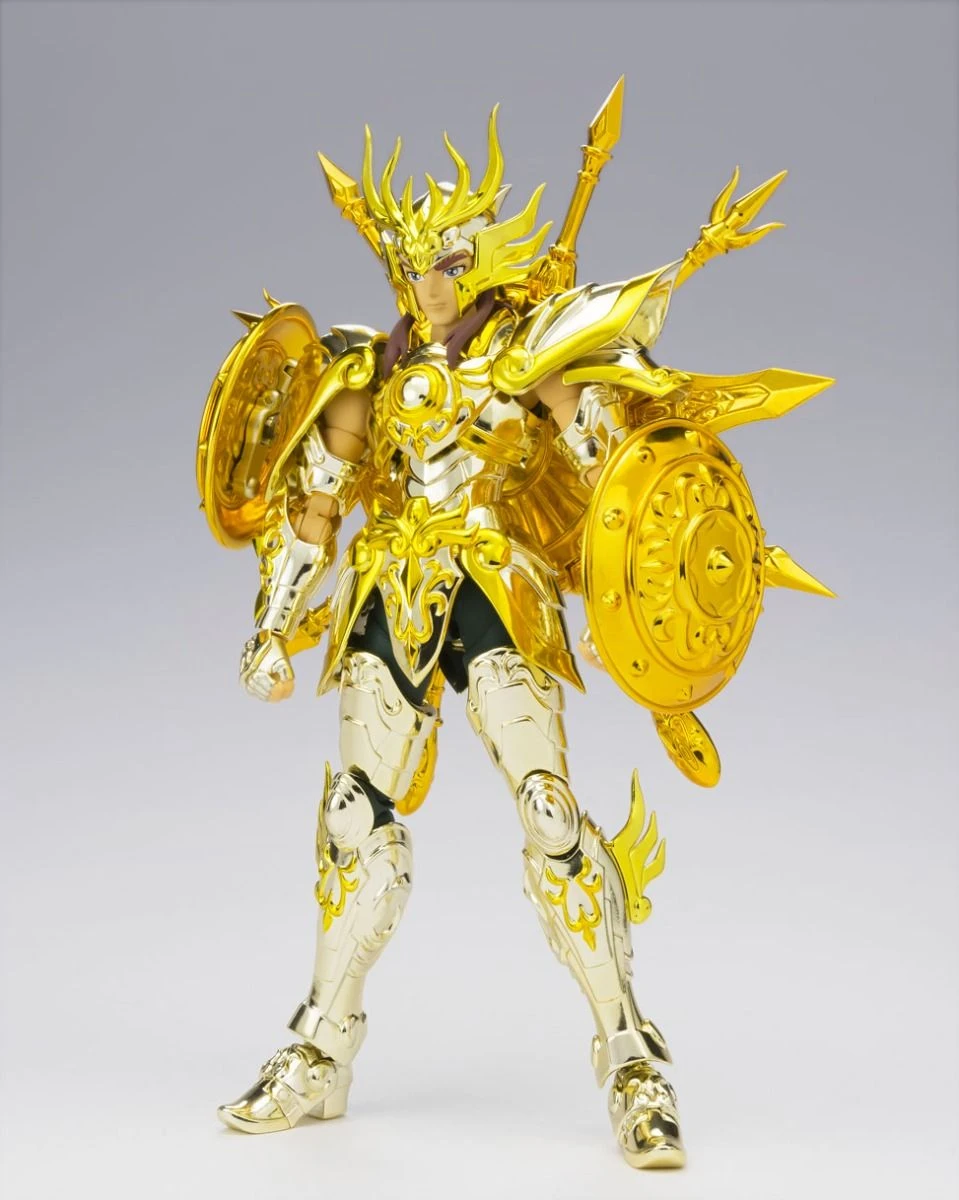 Accessories include, in addition the Cloth set, optional non-shield parts, 4 optional expression parts, 5 pairs of optional hands, one set of optional hair parts, an Object mode frame, 11 types of hands for holding weapons, 2 sets of 6 Libra weapons, and a Saint chart. Also includes Athena Exclamation expression parts for Aries Mu and Gemini Saga figures (both sold separately).