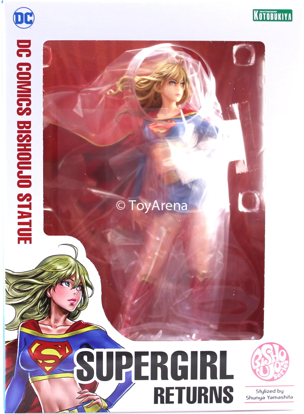 Due to popular demand, Supergirl returns to Kotobukiya’s famous Bishoujo series! “Supergirl Returns” shows a completely different sculpt from the Bishoujo statue released years ago. She’s based on an illustration by Shunya Yamashita, and is sculpted in detail from her natural flowing blonde hair, serious yet cute expression, her heroic pose, and the creases in her cape and skirt.