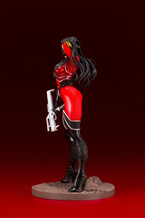 The Cobra team member Baroness is back in the Bishoujo series this time in her elite Crimson Strike Team uniform. Standing over 9 inches tall, Baroness is based an illustration by artist Shunya Yamashita designed after the 2002 figure. Baroness features a deep red color with metallic paintwork, plus an all new weapon.