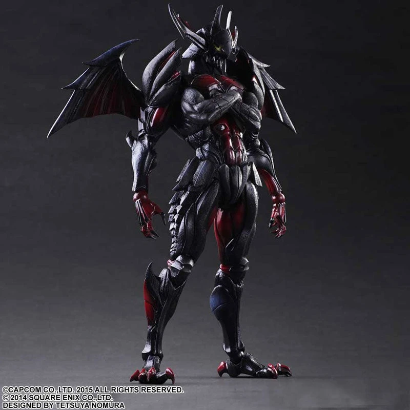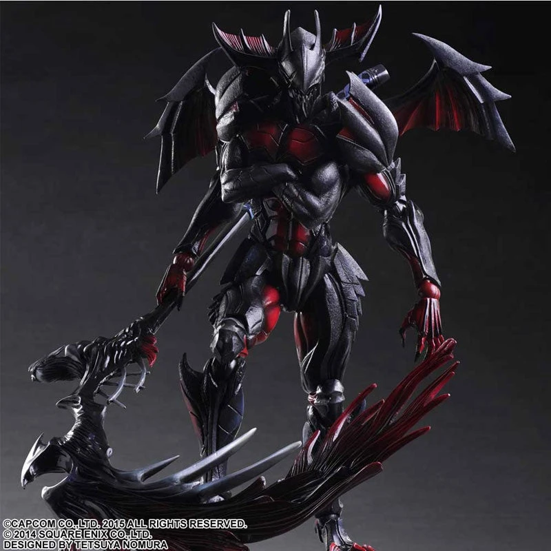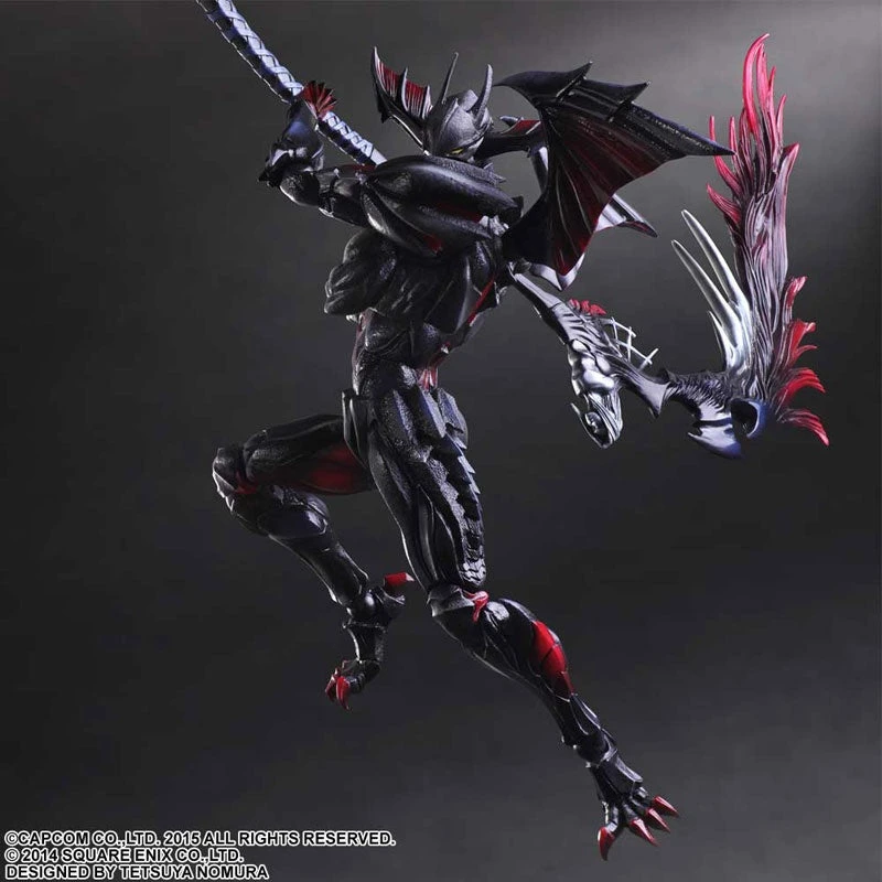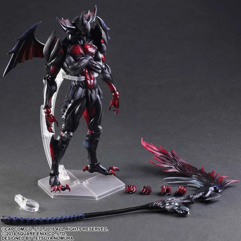 A collaboration between CAPCOM?s hit series Monster Hunter and Square Enix character designer Tetsuya Nomura, the Diablos Armor (Rage Set) born from MONSTER HUNTER 4 Ultimate makes its appearance to the PLAY ARTS KAI line!While taking great care to portray Nomura?s unique proportional design, this figure has a wide range of motion in the shoulders and wings for dynamic posing, making it an extremely action-oriented design.The highly-detailed scythe measures in at an impressive 35cm-plus size! Meanwhile, the paint work shows the attention paid to the life-like texture of the fleshy skin, breathing life into Diablos. These details and more draw the beholder into the unique world of the game!Figure also includes display stand, interchangeable hand parts and accessories.